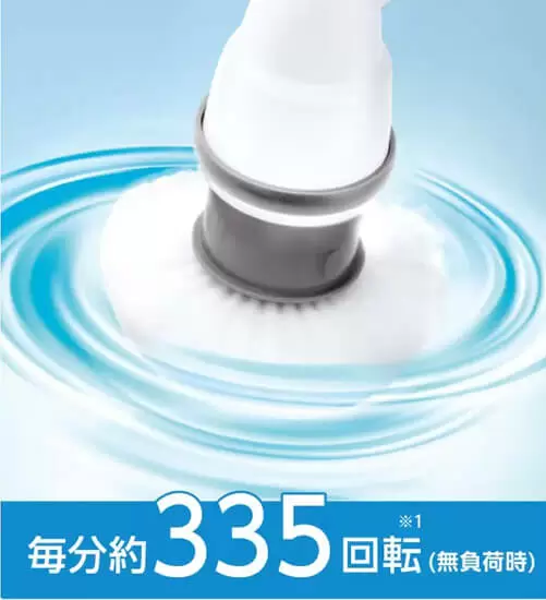 ターボ プロは毎分約335回転するブラシが、ボタン1つの簡単操作で面倒なお風呂そうじをこすらずパワフル洗浄!
